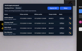 Jitsi Participant Tracker, Jitsi video konferans platformunda katılımcıların izlenmesine yönelik geliştirilmiş bir Chrome uzantısıdır. Bu araç, toplantılara katılan kullanıcıların giriş ve çıkış zamanlarını otomatik olarak kaydeder, her bir katılımcının toplam sürelerini hesaplar ve bu verileri CSV formatında dışa aktarma imkanı sunar. Kullanıcılar, bu özellikler sayesinde toplantıların etkinliğini daha iyi analiz edebilirler.